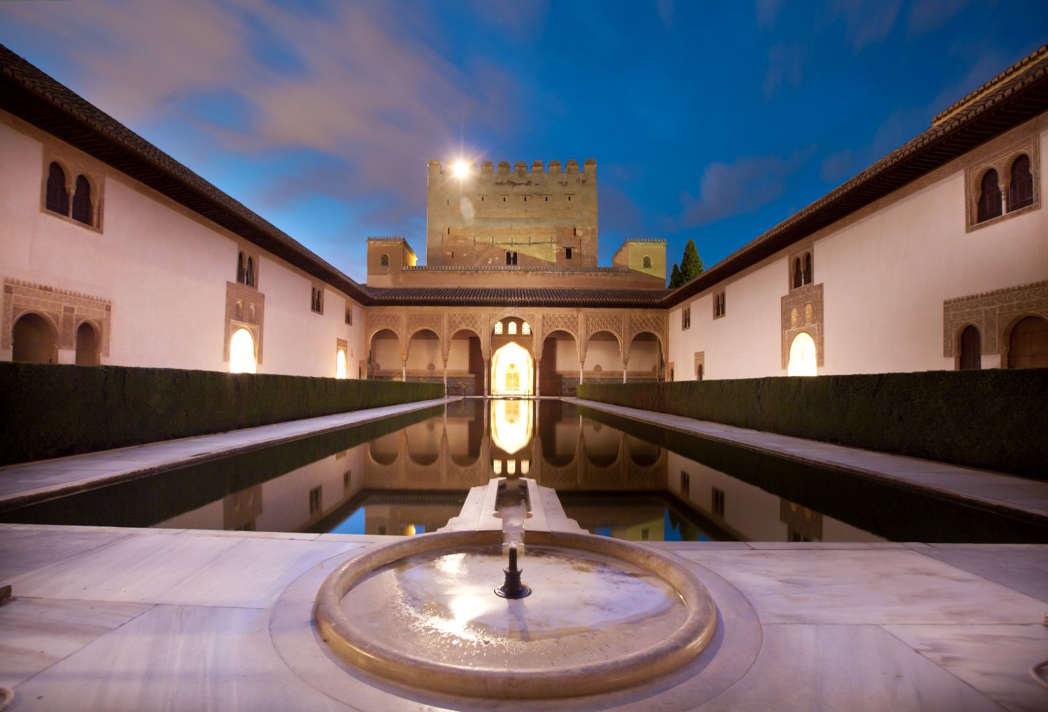 La visita nocturna a los Palacios Nazaríes es una inmersión en el misterio y la magia de Al-Ándalus. Bajo un manto de estrellas, el sonido del agua en los patios cobra protagonismo, guiándote en la penumbra.